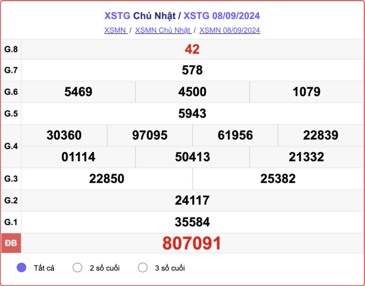 XSTG- XSTG - Xổ số Tiền Giang chủ Nhật ngày 08/09/2024