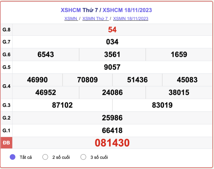- Kết quả XSHCM ngày 25/11/2023