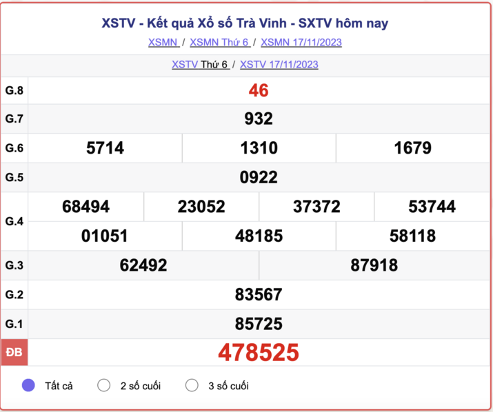 XSTV thứ 6, kết quả xổ số Trà Vinh hôm nay 17/11/2023