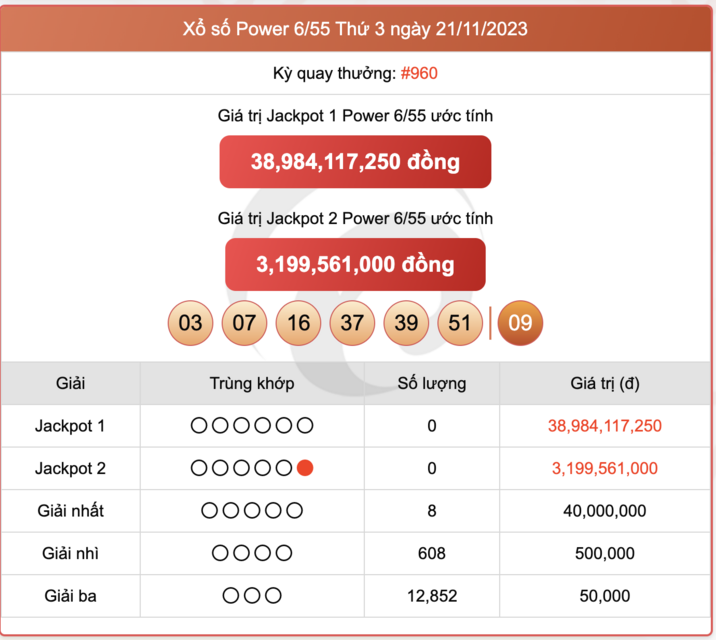 Cập nhật kết quả xổ số Vietlott Power 6/55 21/11 - Vietlott thứ 3 ngày 21/11/2023