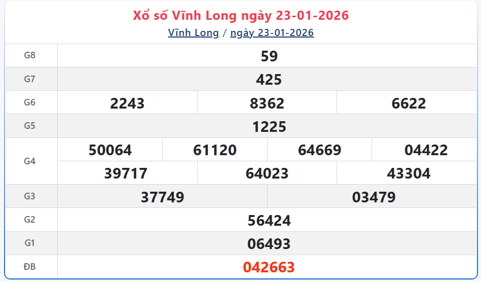 Trực tiếp Kết quả xổ số Vĩnh Long hôm nay - Kết quả XSVL 23/1 - XSVL hôm nay Thứ Sáu ngày 23/1/2026 - Kết quả xổ số Vĩnh Long hôm nay ngày 23/1/2026