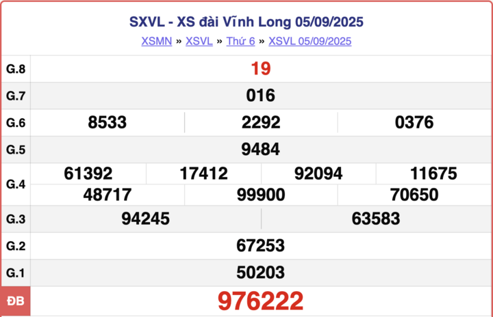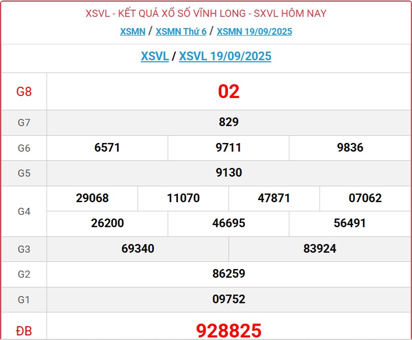XSVL 19/9, Kết quả xổ số Vĩnh Long ngày 19/9/2025