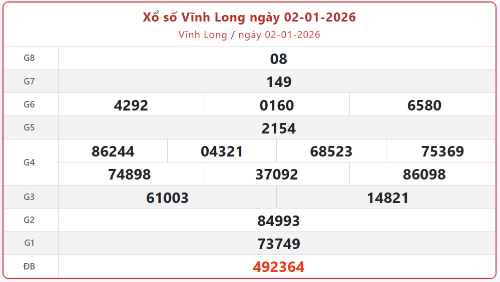 Theo dõi ngay kết quả xổ số Vĩnh Long hôm nay ngày 9/1/2026 nhanh chóng và chính xác nhất để không bỏ lỡ thời gian nhận thưởng