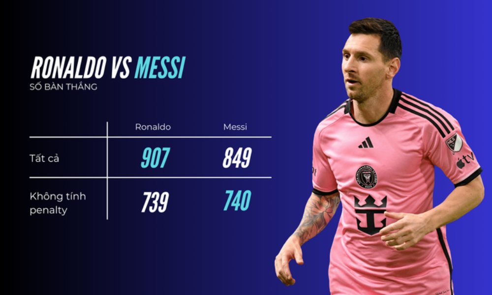 Messi ghi nhiều bàn hơn Ronaldo nếu không tính penalty.