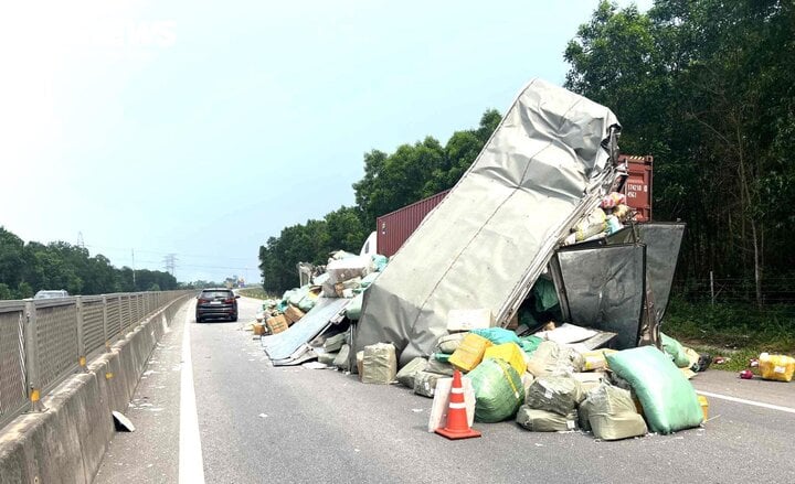Vụ tai nạn giữa xe tải và xe đầu kéo vừa xảy ra trên cao tốc Cam Lộ - La Sơn, đoạn qua tỉnh Thừa Thiên - Huế khiến một người bị thương.