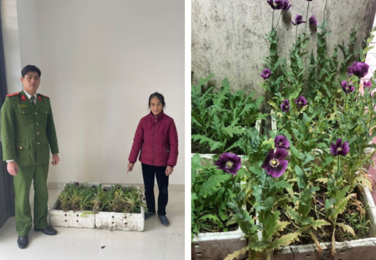 Ngày 16/02/2024, Công an xã Tú Xuyên, huyện Văn Quan phát hiện tại nhà bà La Thị Choi, sinh năm 1957, trú tại: Thôn Hang Nà, xã Tú Xuyên, huyện Văn Quan, tỉnh Lạng Sơn có trồng cây thuốc phiện trong thùng xốp được đặt trên mái hiên của gia đình.