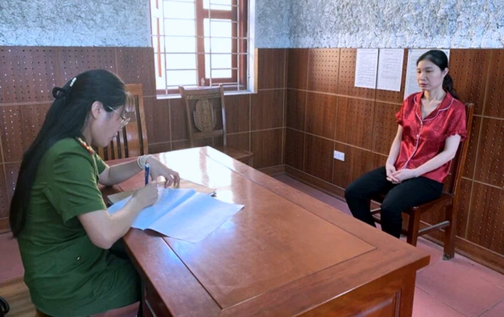 Vũ Thị Loan tại cơ quan công an. (Ảnh: HT)