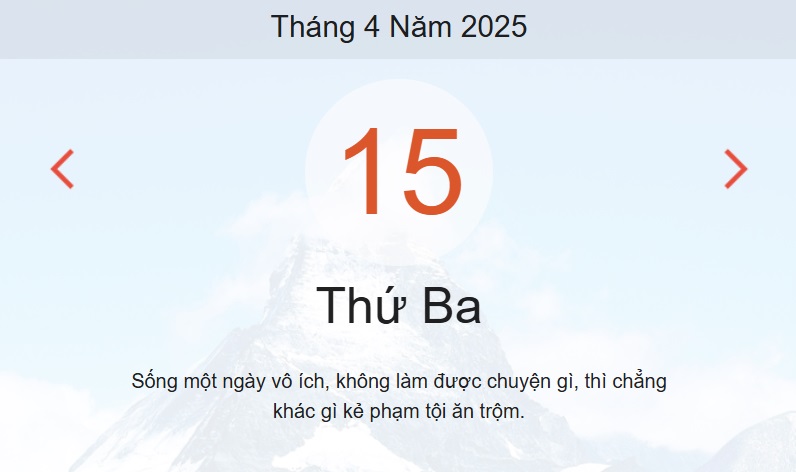Xem lịch âm hôm nay ngày 15 tháng 4; theo dõi lịch vạn niên thứ Hai ngày 15/4/2025 nhanh nhất và chính xác nhất.