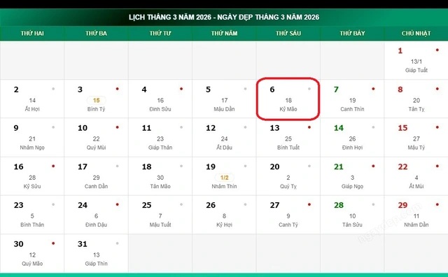 Lịch âm 6/3 - Âm lịch hôm nay 6/3 chính xác nhất - lịch vạn niên ngày 6/3/2026