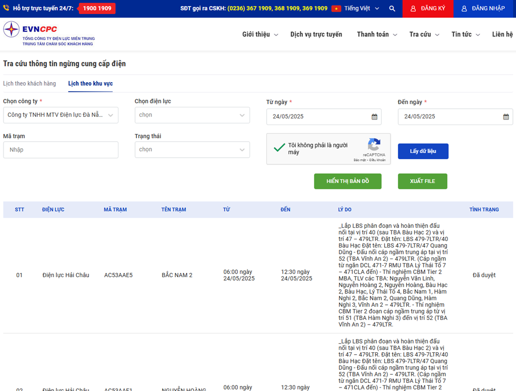 Lịch cắt điện Đà Nẵng cập nhật tại website của Điện lực miền Trung