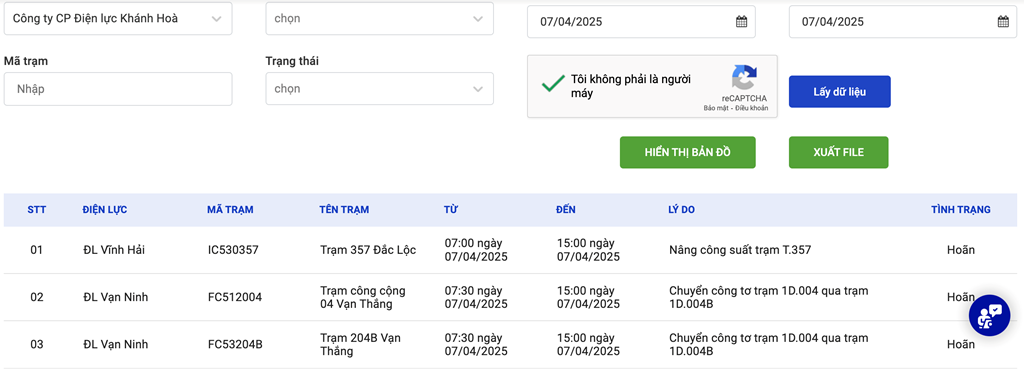 Thông tin lịch ngừng cung cấp điện cập nhật mới nhất của các thành phố, thị xã, huyện của Khánh Hòa ngày mai 7/4 được cập nhật mới nhất trên website của Tổng công ty Điện lực miền Trung.