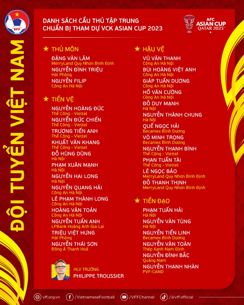 Dự kiến, đến ngày 13/1 HLV Troussier sẽ chốt danh sách dự Asian Cup 2024.