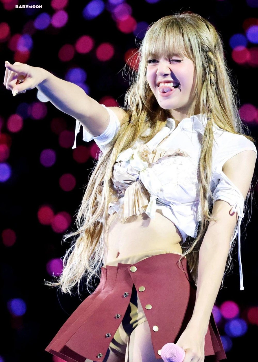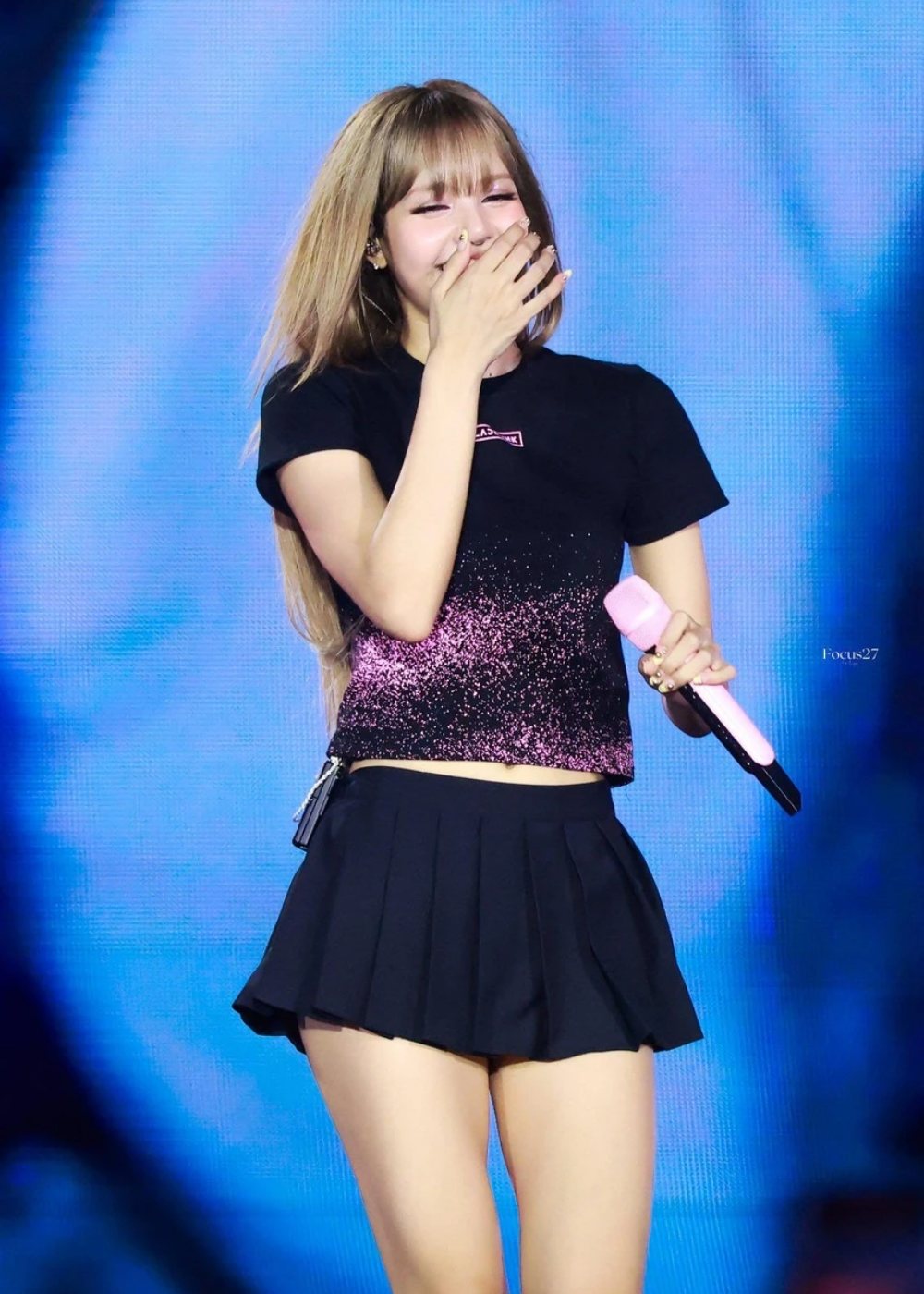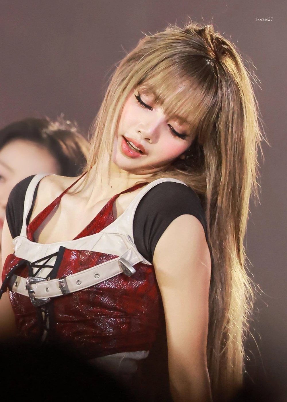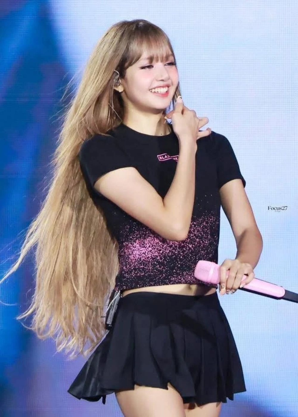 Kiểu tóc mái bằng màu vàng kim, kết hợp lớp trang điểm tông hồng làm nổi bật nét trẻ trung, tươi tắn của nữ idol sinh năm 1997. Trang phục áo crop top kết hợp quần short, chân váy ngắn ôm sát chất liệu sequin hoặc nhấn nhá da bóng làm tôn lên lợi thế vóc dáng. Tạo hình này mang đến hình ảnh một Lisa đậm chất girl crush, vừa mạnh mẽ, cá tính nhưng vẫn không kém phần uyển chuyển, quyến rũ.