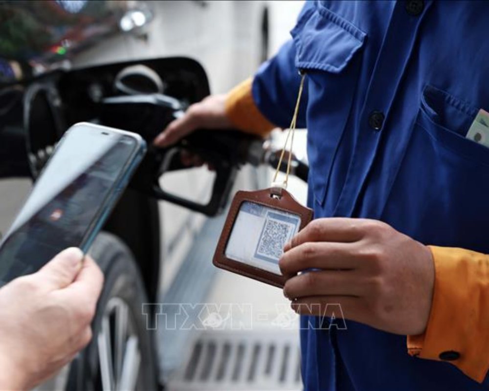 Thanh toán qua mã QR ngày càng trở nên phổ biến. Trong ảnh: Khách hàng quyét mã QR Cod thanh toán không dùng tiền mặt tại một điểm kinh doanh xăng dầu. Ảnh: Trần Việt - TTXVN