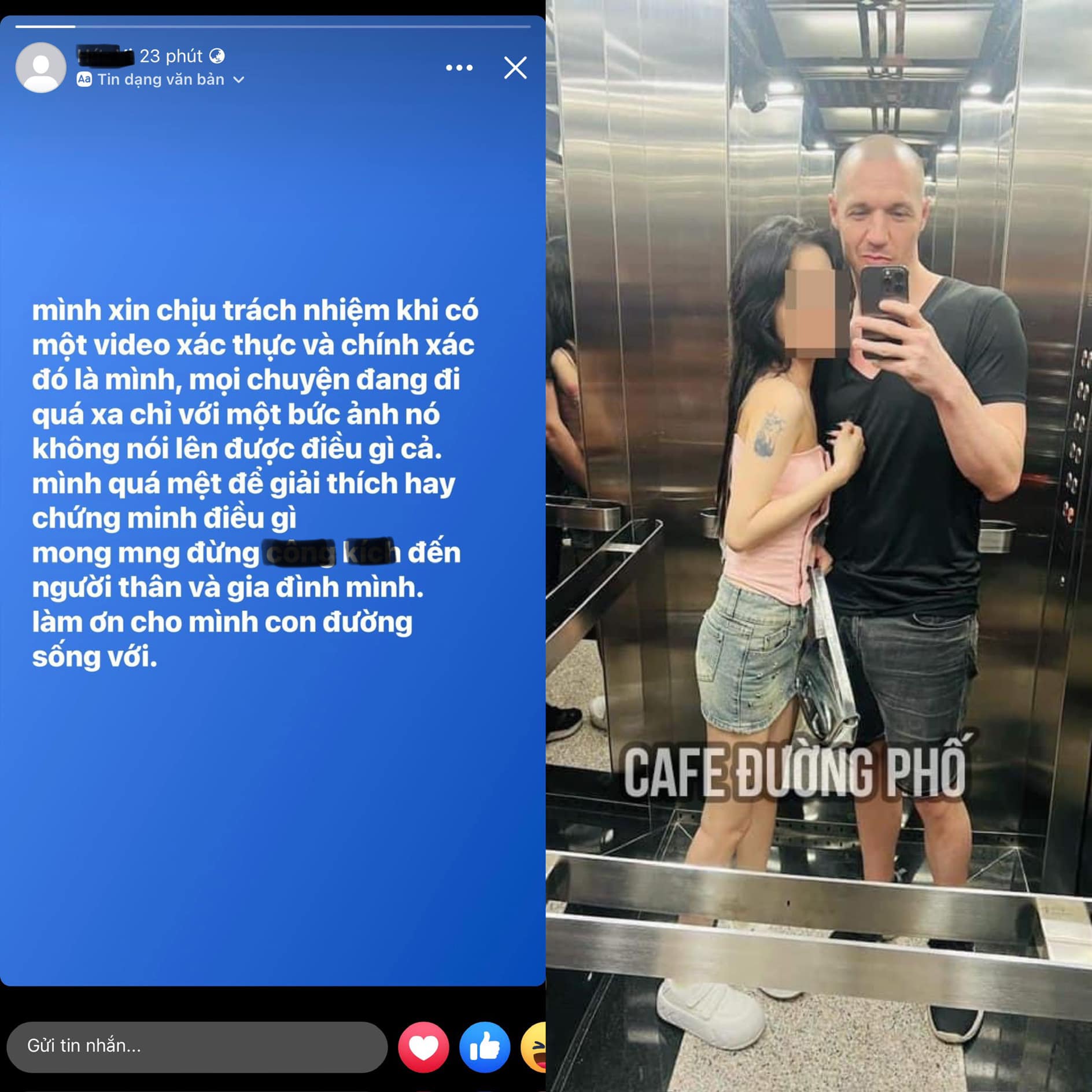 Người đàn ông này đang trong thang máy, chụp ảnh cùng với một cô gái chưa rõ danh tính. Ngay lập tức cư dân mạng đã bàn tán sôi nổi cũng như săn tìm thông tin của cô gái trẻ kia.