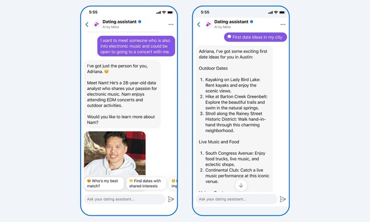 Đầu tiên là Trợ lý Hẹn hò – một chatbot AI có khả năng hỗ trợ người dùng tối ưu hóa hồ sơ cá nhân và gợi ý đối tượng tiềm năng dựa trên sở thích cụ thể, chẳng hạn như “người làm trong ngành công nghệ ở Hà Nội”.