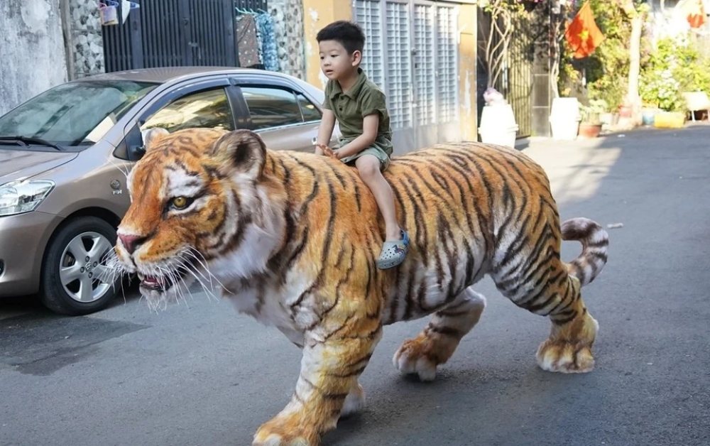 Con hổ mô hình khiến cộng đồng mạng thích thú. Ảnh: Nhân vật cung cấp