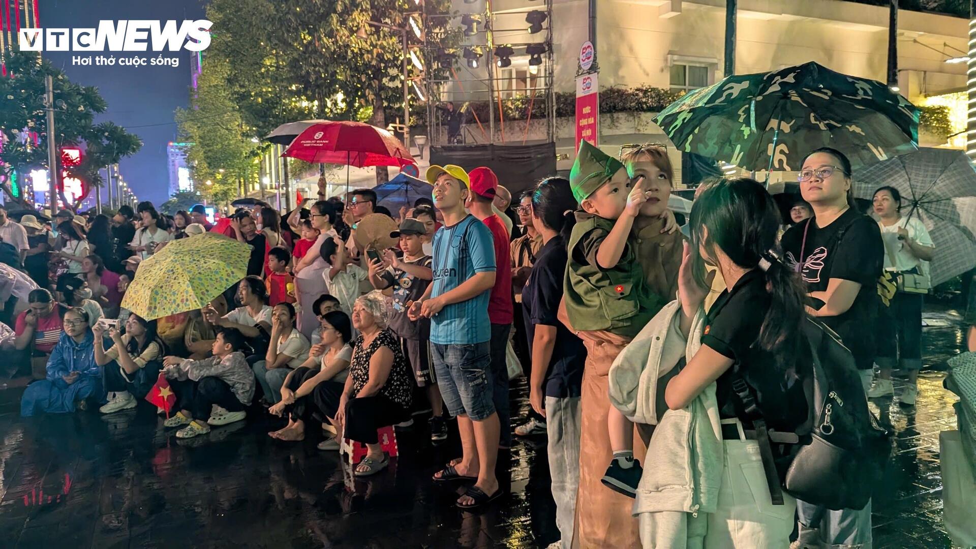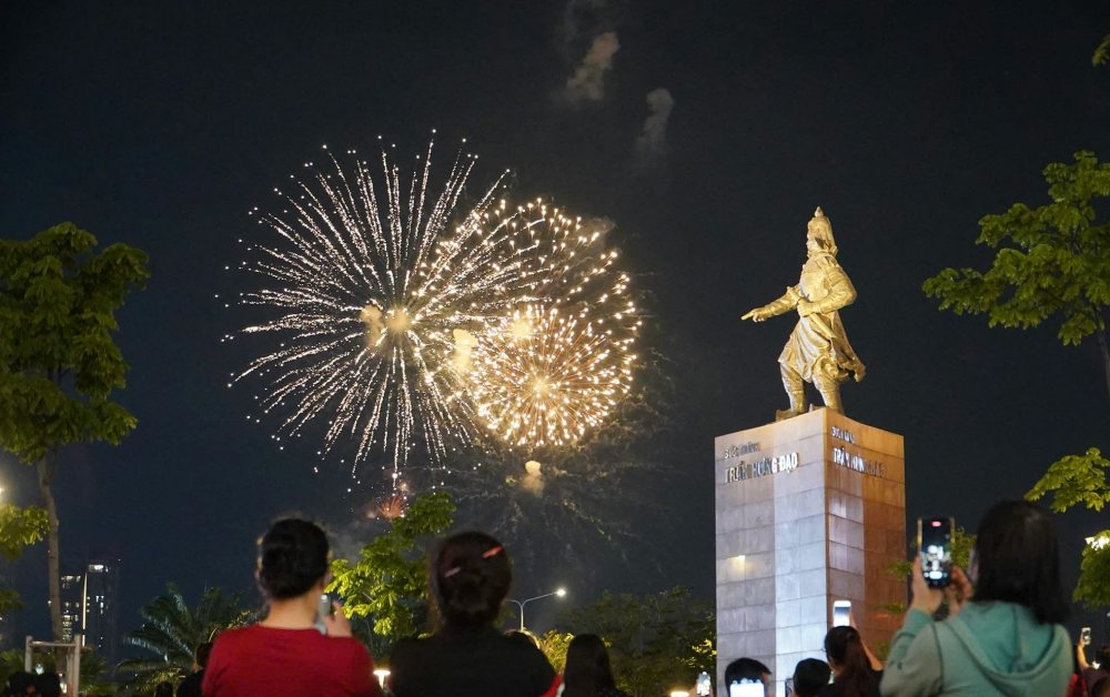 Dù cơn mưa bất chợt trút xuống trước giờ diễn ra sự kiện nhưng hàng chục nghìn người dân vẫn đội mưa, náo nức đổ về khu vực bến Bạch Đằng, đường Đồng Khởi và các tuyến đường ven sông để đón chờ khoảnh khắc pháo hoa tỏa sáng.