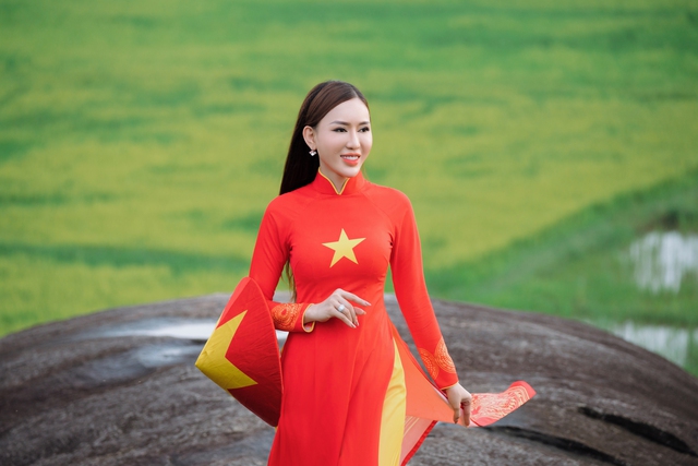 Thay vì chọn dạ hội, vương miện, Thùy Dung chọn áo dài cờ đỏ sao vàng
