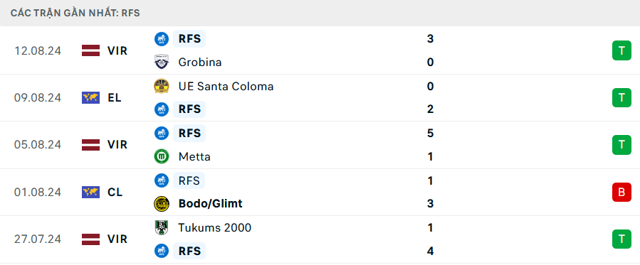 Phong độ Rigas Futbola Skola 5 trận gần nhất