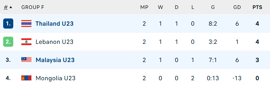 U23 Malaysia: thắng 3-0 U23 Mông Cổ (Fergus Tierney hat-trick), thua U23 Lebanon; đang bị động trong cuộc đua ngôi đầu.