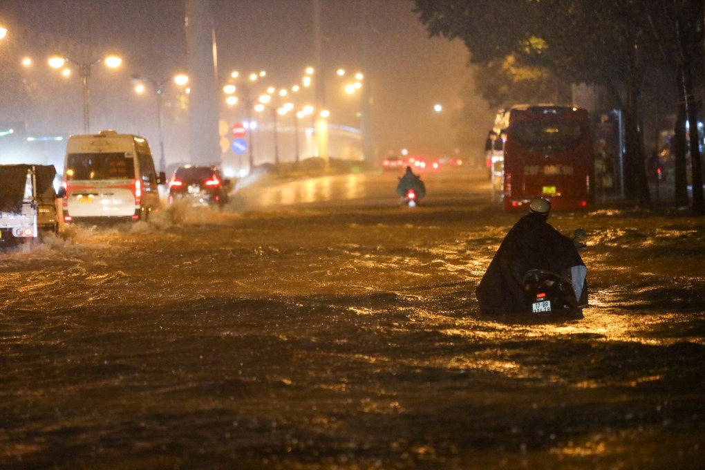 Anh Xuân Quang, lái xe dịch vụ, cho biết khi đi đến phần hầm bên phía làn đường gom thì không thể di chuyển. Bên làn cao tốc, dòng xe xếp thành một hàng nối đuôi nhau đi ở làn ngoài, nơi ngập ít nhất nước cũng lên đến nửa bánh. Khi đi qua hầm, anh Quang đã cố đạp dứt khoát ga để không bị chết máy.