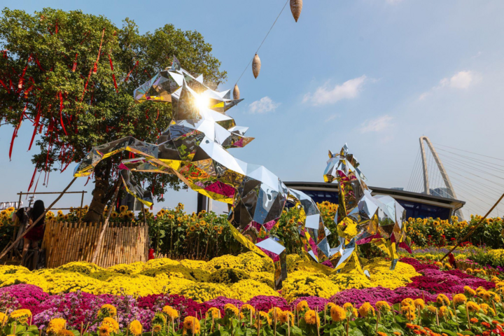 Cong viên hoa bên sông Sài Gòn trang trí ấn tượng thu hút đông khách vui chơi, chụp hình mỗi ngày.