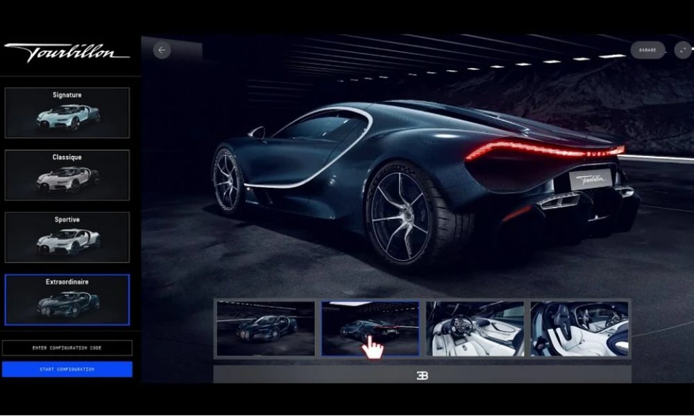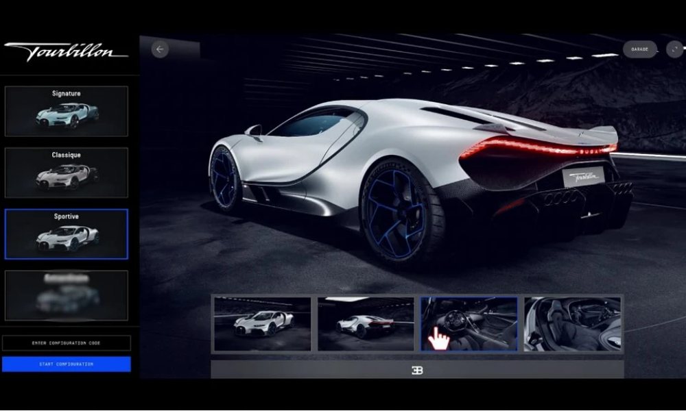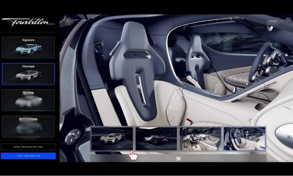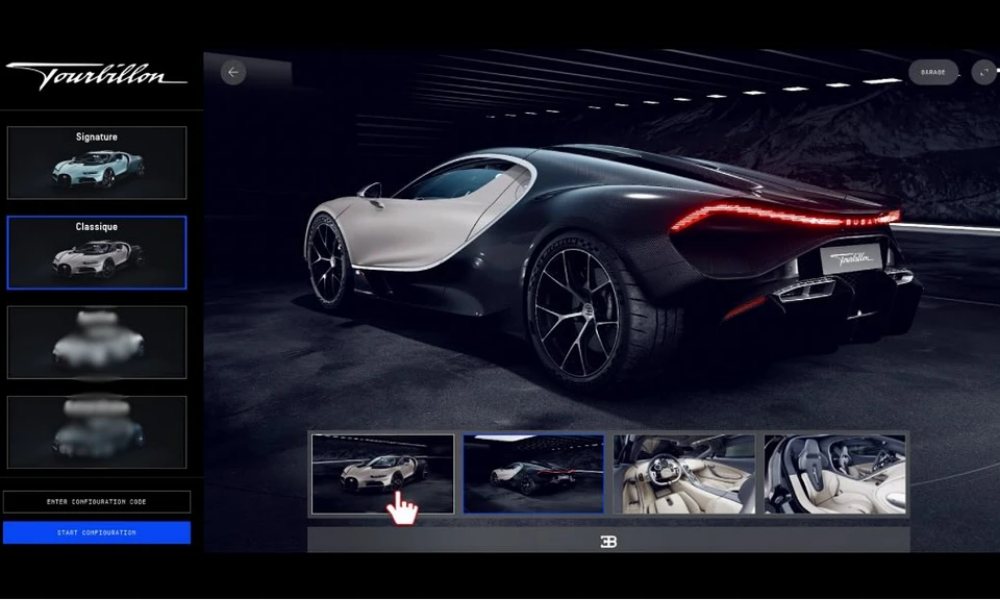 Giống với các hãng siêu xe như Koenigsegg, Pagani..., trang xây dựng cấu hình xe của Bugatti không được tiết lộ đến công chúng. Chỉ những khách hàng tiềm năng mới được cung cấp tài khoản truy cập riêng.