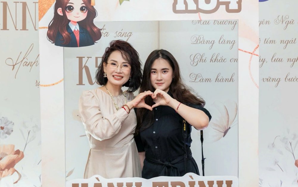 Giang và mẹ trong ngày tổng kết năm học. Ảnh: Nhân vật cung cấp