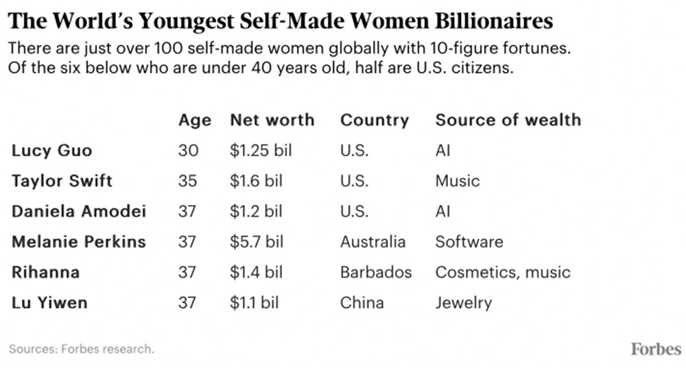 Danh sách các nữ tỷ phú trẻ. Ảnh: Forbes