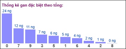 ⇒ Từ thống kê trên, ta thấy được tổng 0 gan nhất đã 24 ngày chưa xuất hiện, (bao gồm 10 cặp số: 00, 19, 28, 37, 46, 55, 64, 73, 82, 91)