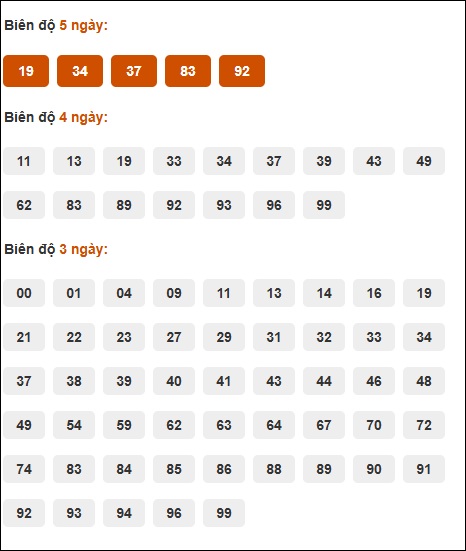 ⇒ Theo dõi thống kê trên, ta thấy chạm đề 3 lâu chưa ra nhất (bao gồm 19 cặp số có chứa số 3), và đã 16 ngày chưa xuất hiện.