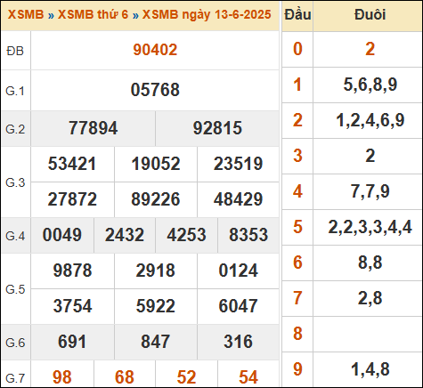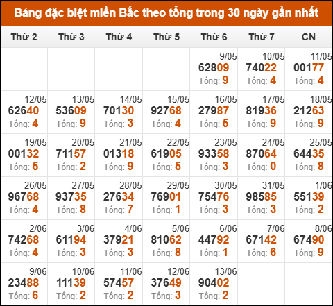 Thống kê XSMB hôm trước ngày 13/06/2025