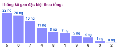 ⇒ Từ bảng thống kê trên, ta thấy tổng đặc biệt lâu chưa xuất hiện nhất là tổng 5 (bao gồm những cặp số: 05, 14, 23, 32, 41, 50, 69, 78, 87, 96), và đã 22 ngày chưa xuất hiện.