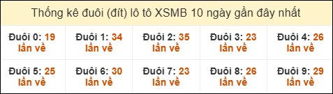 Thống kê tần suất đuôi lô tô Miền Bắc đến ngày 14/06/2025