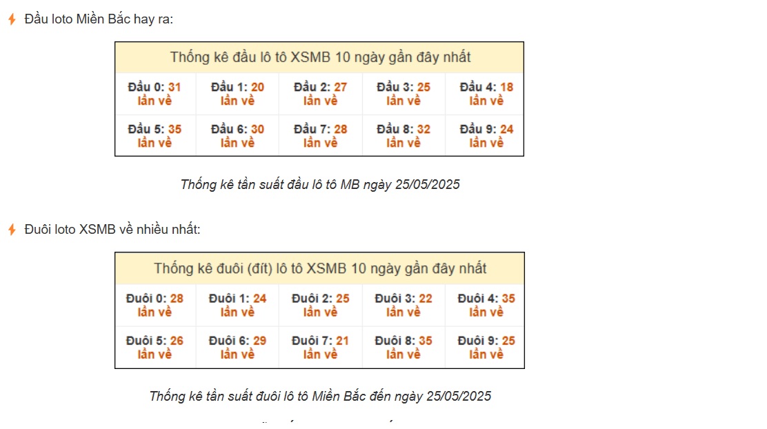⇒ Từ số liệu phân tích miền Bắc ngày 25/05/2025 hôm trước, người chơi sẽ nắm bắt được dấu hiệu cơ bản và đưa ra nhận định về con số may mắn 25/05/2025 hôm nay hiệu quả.