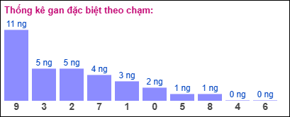 ⇒ Theo dõi thống kê trên, ta thấy chạm đề 9 lâu chưa ra nhất (bao gồm 19 cặp số có chứa số 9), và đã 11 ngày chưa xuất hiện.