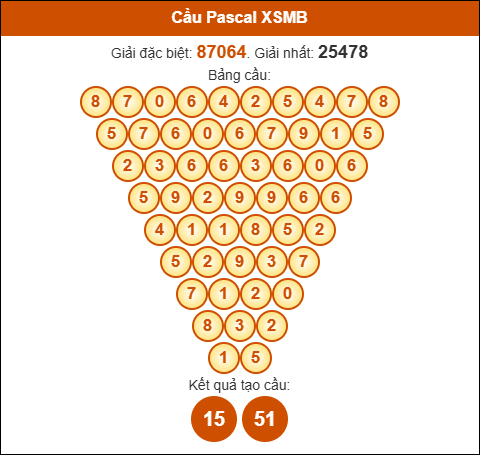 Bình luận xổ số Miền Bắc 25/05 dựa vào tam giác Pascale (được tính theo kết quả ngày hôm trước)