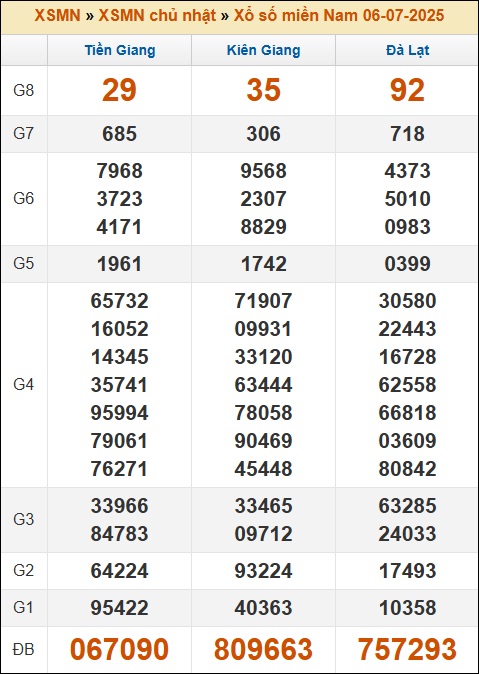 Kết quả xổ số Miền Nam 06/07/2025 chủ nhật tuần trước