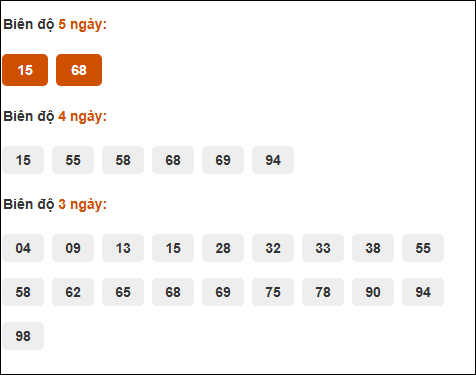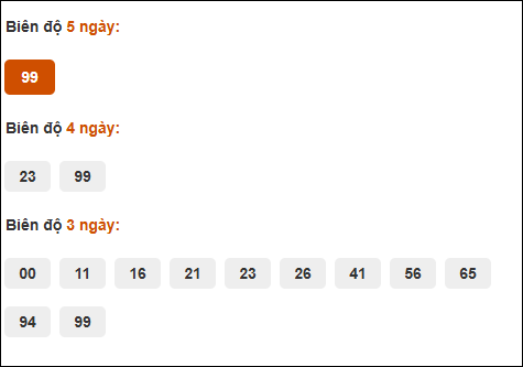 Đuôi 8: 6 ngày, Đuôi 1: 5 ngày, Đuôi 9: 5 ngày, Đuôi 4: 3 ngày, Đuôi 5: 2 ngày