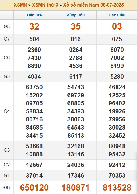 Kết quả xổ số Miền Nam 08/07/2025 thứ 3 tuần trước