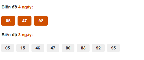 Đuôi 9: 13 ngày, Đuôi 4: 6 ngày, Đuôi 2: 5 ngày, Đuôi 5: 5 ngày, Đuôi 3: 3 ngày