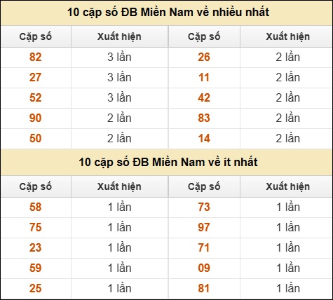 ⚡ 10 cặp số ĐB Miền Nam về nhiều nhất/ ít nhất tính đến ngày 17/7/2025: