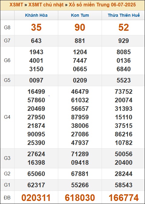Thống kê XSMT 13/07/2025 - Phân tích xổ số Miền Trung ngày 13 tháng 7 năm 2025 hôm nay Chủ Nhật gồm ba tỉnh: Khánh Hòa, Kon Tum, Thừa Thiên Huế chi tiết❤️ Bình luận KQXSMT 13/07/2025 MIỄN PHÍ từ cao thủ.