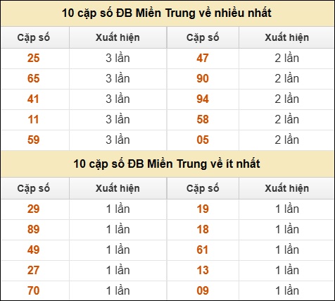 ⚡ 10 cặp số ĐB XSMT về nhiều nhất/ ít nhất tính dến ngày 13/07/2025: