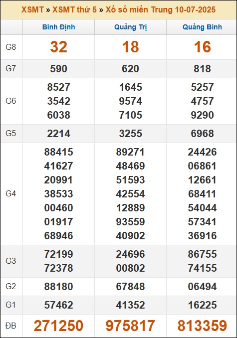 Thống kê XSMT 17/7/2025 - Phân tích kết quả xổ số Miền Trung Thứ 5 ngày 17 tháng 7 năm 2025 gồm 3 đài: Bình Định - Quảng Trị - Quảng Bình chi tiết nhất. Tham khảo nhận định XSMT hôm nay 17/7/2025 miễn phí 100%.