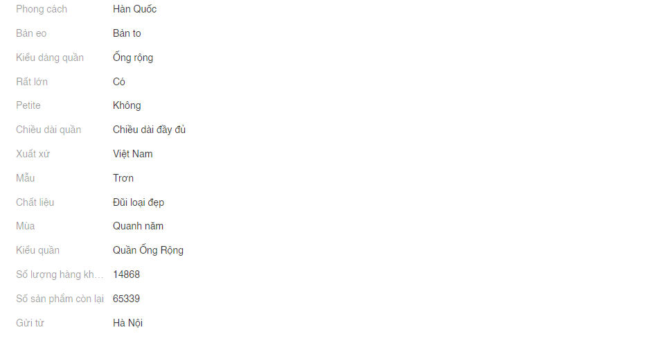 Giới thiệu thông tin Quần Ống Rộng Nữ