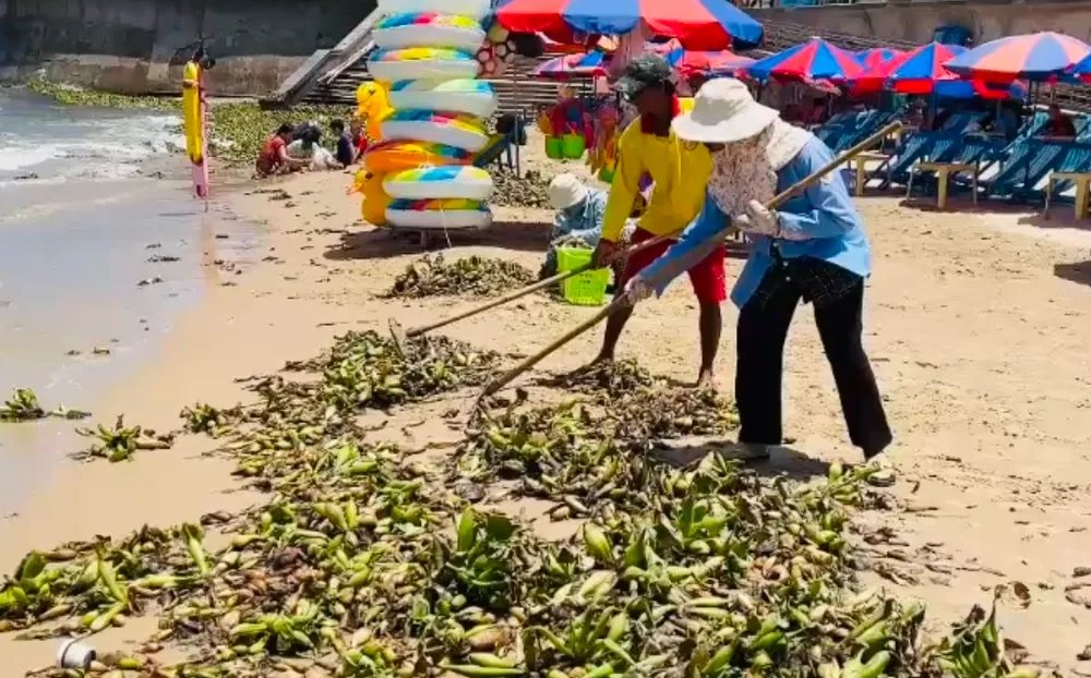 Thành phần của rác thải trôi dạt vào các bãi biển chủ yếu là lục bình, quả đước, mùn cặn (do bèo tây, quả đước dập nát), rong biển, cành cây, quả dừa nước, bịch nilon, hộp xốp và vỏ chai lọ các loại…