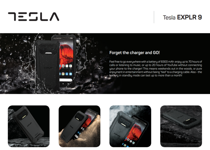 Trong khi đó, một số dòng điện thoại chắc chắn (rugged phone) gắn mác Tesla đã xuất hiện trên thị trường châu Âu và châu Á, chẳng hạn Tesla EXPLR 9 với màn hình 6,3 inch và pin 5000 mAh. Tuy nhiên, đây là sản phẩm của công ty khác sử dụng thương hiệu Tesla theo giấy phép, không liên quan đến Tesla của tỷ phú Elon Musk.