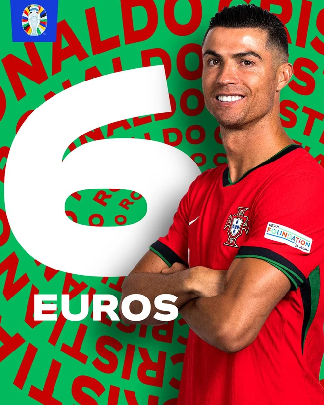 Cụ thể, Ronaldo đi vào lịch sử UEFA EURO với tư cách là cầu thủ đầu tiên có 6 lần tham dự giải đấu (vào các năm 2004, 2008, 2012, 2016, 2020 và 2024).
